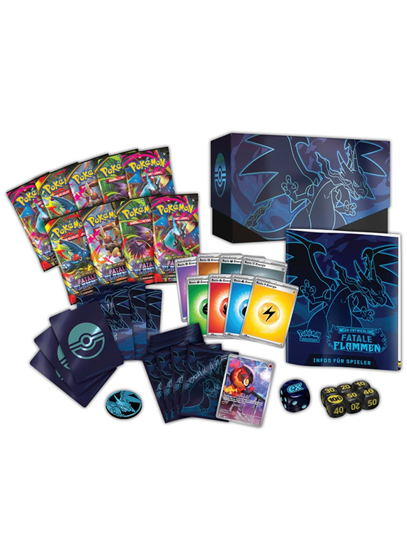 9 Booster Packs der Pokémon-Erweiterung "Mega-Entwicklung - Fatale Flammen" sowie umfangreichem Zubehör und Extras